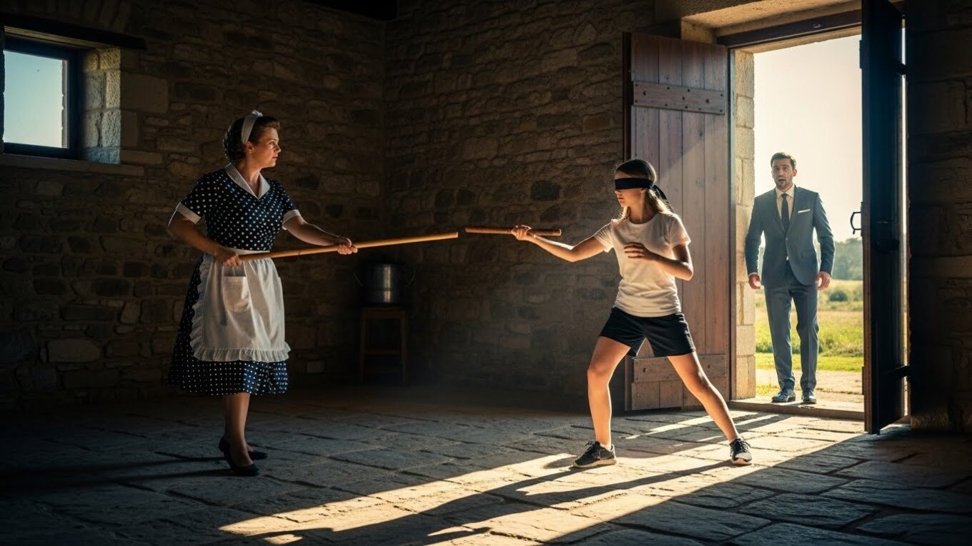 No centro da sala, descalça no chão frio, estava Valentina, sua filha de doze anos. O cabelo preto preso num rabo de cavalo que se desfazia, o corpo suado, ofegante. Os olhos, brancos desde o nascimento, não focavam nada. Ainda assim, ela parecia “enxergar” com a pele, com a respiração, com o instinto.