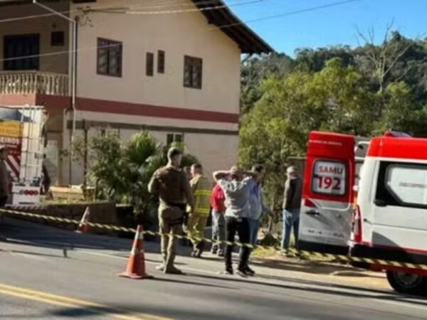 Continue lendoO barulho repentino, seguido por nuvens de poeira e a queda de parte de um prédio no centro de Ibirama,